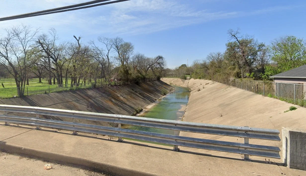 Haskell Branch now daylights into a cement channel in South Dallas, near Jamaica Street and South Second Avenue (photo credit for figures: Google Maps).